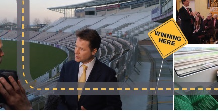 On the road with Nick Clegg: visiting all 57 seats "It can be hectic. One minute he's on the phone to Danny or the Cabinet Secretary discussing the Budget or some incredibly important government business, the next he's chatting to apprentices, catching up with party members or taking questions from the public." |